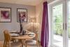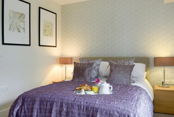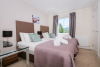The open-plan kitchen is fully fitted with oven, gas hob, fridge-freezer, dishwasher and all the essentials, while the dining table creates a cosy space to enjoy meals together.The property sleeps four guests across two spacious bedrooms. The master features a king-sized bed with a luxurious ensuite bathroom, while the twin room is served by a family bathroom with both bath and large shower. An additional downstairs cloakroom adds further convenience. Linen and towels are provided, and there is also a travel cot and highchair available for young families.